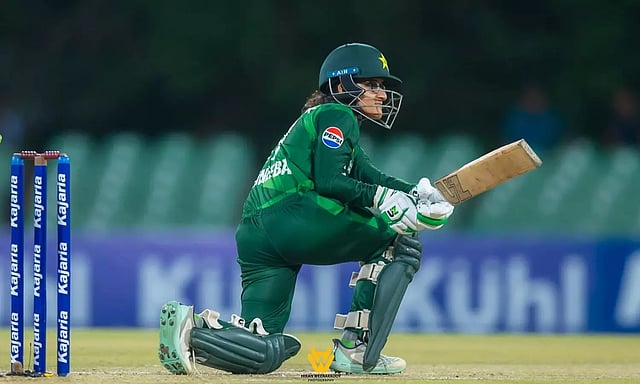 அதன்படி, பாகிஸ்தான் அணி முதலில் களமிறங்கியது. தொடக்க வீராங்கனைகள் நிதானமாக ஆடினர். முதல் விக்கெட்டுக்கு 61 ரன்கள் சேர்த்த நிலையில் குல் பெரோசா 25 ரன்னில் அவுட்டானார். ஓரளவு தாக்குப் பிடித்த முனீபா அலி 37 ரன்னில் ஆட்டமிழந்தார். கேப்டன் நிதா தர் 23 ரன்னில் வெளியேறினார்.