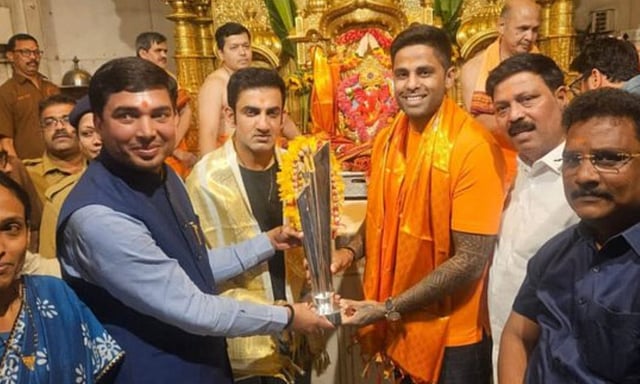 இந்த நிலையில், மும்பையில் உள்ள சித்தி விநாயகர் கோவிலில் இந்திய அணி தலைமை பயிற்சியாளர் கம்பீர், கேப்டன் சூர்யகுமார் யாதவ் உள்ளிட்டோர் உலகக் கோப்பையுடன் சென்று சாமி தரிசனம் செய்தனர். மேலும் ஐசிசி தலைவர் ஜெய் ஷாவும் இவர்களுடன் சாமி தரிசனம் செய்தார்.