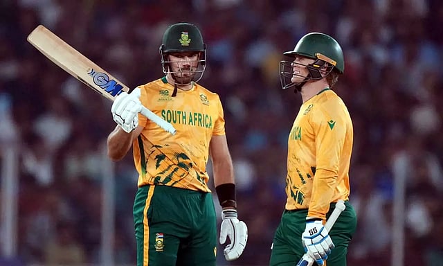 பின்னர் 175 ரன்கள் எடுத்தால் வெற்றி என்ற இலக்குடன் தென்ஆப்பிரிக்காவின் மார்க்கிராம்- குயின்டன் டி காக் ஆகியோர் தொடக்க வீரர்களாக களம் இறங்கினர். மார்க்கிராம் தொடக்கம் முதல் அதிரடி ஆட்டத்தை வெளிப்படுத்தினார். டி காக் 14 பந்தில் 20 ரன்கள் எடுத்து ஆட்டமிழந்தார். 3 ஒவரில் தென்ஆப்பிரிக்கா 50 ரன்னைத் தொட்டது. மார்க்கிராம் 19 பந்தில் அரைசதம் அடித்தார். ரிக்கெல்டன், டெவால்டு பிரேவிஸ் தலா 21 ரன்கள் சேர்த்தனர்.