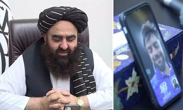 இந்நிலையில், ஆப்கானிஸ்தான் கேப்டன் ரஷித் கானுக்கு வீடியோ காலில் அந்நாட்டின் வெளியுறவுத்துறை அமைச்சர் அமீர் கான் வாழ்த்து சொல்லியுள்ளார். அந்த வீடியோ இணையத்தில் வைரலாகி வருகிறது.