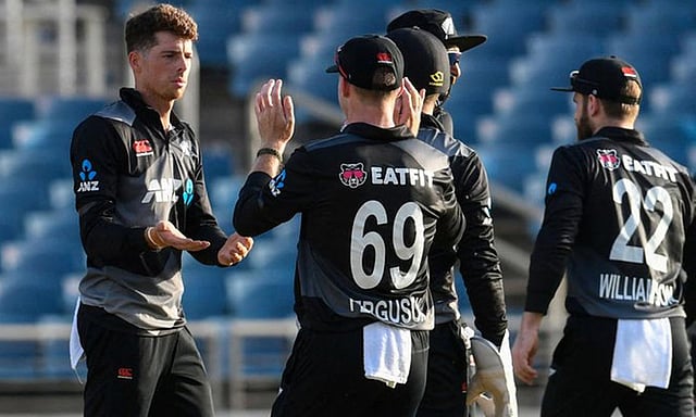 கேப்டன் வில்லியம்சன் 33 பந்தில் 47 ரன்னும் (4 பவுண்டரி, 2 சிக்சர்), கான்வே 29 பந்தில் 43 ரன்னும் (4 பவுண்டரி, 2 சிக்சர்), ஜிம்மி நீசம் 15 பந்தில் 33 ரன்னும் ( 3 பவுண்டரி, 2 சிக்சர்) எடுத்தனர். ஓடியன் சுமித் 3 விக்கெட் கைப்பற்றினார்.