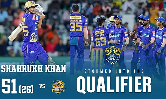 அதிரடியாக விளையாடி அரைசதம் விளாசி 1 விக்கெட்டும் வீழ்த்திய ஷாருக்கான் ஆட்டநாயகனாக தேர்ந்தெடுக்கப்பட்டார்.