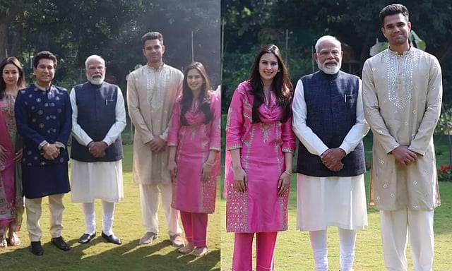 சச்சின் டெண்டுல்கர் தனது குடும்பத்துடன் பிரதமர் மோடியை நேரில் சந்தித்து, தனது மகன் அர்ஜுன் டெண்டுல்கர் மற்றும் சானியா சந்தோக் ஆகியோரின் திருமணத்திற்கு அழைப்பு விடுத்தார்.