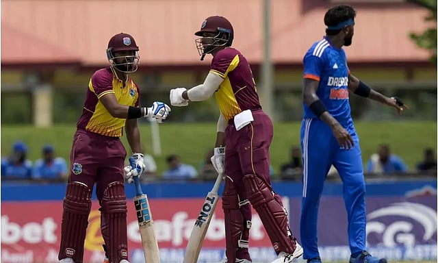இதையடுத்து, 166 ரன்கள் எடுத்தால் வெற்றி என்ற இலக்குடன் வெஸ்ட் இண்டீஸ் களமிறங்கியது. கைல் மேயர்ஸ் 10 ரன்னில் அவுட்டானார்.