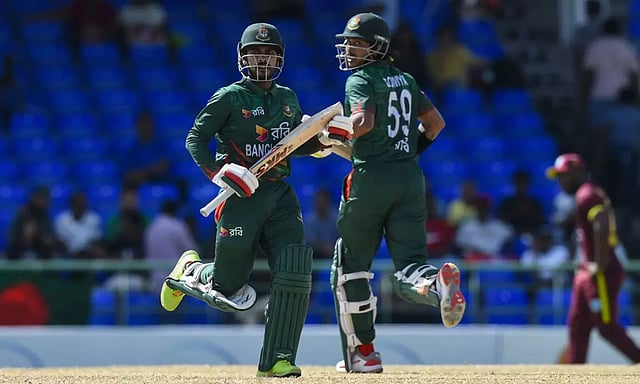 அதன்படி, வங்கதேசம் அணி முதலில் களமிறங்கியது. தொடக்க ஆட்டக்காரர் சவுமியா சர்க்கா அரை சதமடித்து 73 ரன்னில் அவுட்டானார். கேப்டன் மெஹிதி ஹசன் 77 ரன்னில் வெளியேறினார்.