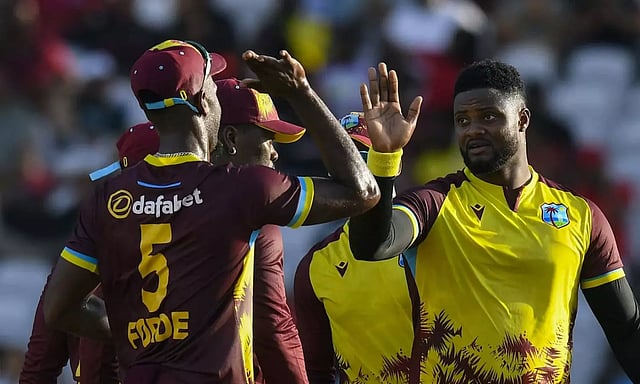 தொடக்க வீரர் அதானஸ் 21 பந்தில் 28 ரன்கள் சேர்த்தார். ஷாய் ஹோப் 22 பந்தில் 41 ரன்கள் விளாசினார். கேப்டன் ரோவ்மேன் பொவேல் 22 பந்தில் 35 ரன்களும், ரூதர்போர்டு 18 பந்தில் 29 ரன்களும் சேர்த்தனர். தென்ஆப்பிரிக்கா அணி சார்பில் வில்லியம்ஸ் அதிகபட்சமாக 4 ஓவரில் 36 ரன்கள் விட்டுக்கொடுத்து 3 விக்கெட் வீழ்த்தினார்.