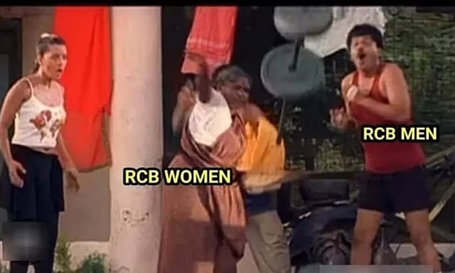அதுமட்டுமல்லாமல், இந்த கருமத்தைதான் ராத்திரி முழுக்க ஒட்டிட்டு இருந்தியா என்று நக்கல் செய்வார். அதேபோல் பறவை முனியம்மாவாக ஆர்சிபி மகளிர் அணியையும், விவேக்காக ஆர்சிபி ஆடவர் அணியையும் மாற்றி, 16 சீசனா இந்த கோப்பையை ஜெயிக்க தான் உருட்டிட்டு இருந்தியா என்று உருவாக்கப்பட்டு உள்ளது.