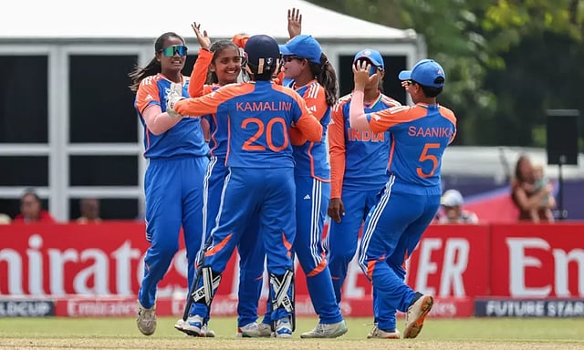இதன் காரணமாக தென் ஆப்பிரிக்கா அணி 20 ஓவர்கள் முடிவில் 82 ரன்களுக்கு ஆல் அவுட் ஆனது. இந்தியா சார்பில் சிறப்பாக பந்துவீசிய கொங்கடி திரிஷா 3 விக்கெட்டுகளையும், வைஷ்ணவி ஷர்மா, ஆயுஷி ஷுக்லா மற்றும் பருனிகா சிசோடியா தலா 2 விக்கெட்டுகளை வீழ்த்தினர். ஷப்னம் ஷாகில் ஒரு விக்கெட் வீழ்த்தினார்.