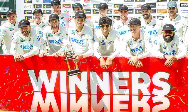 நியூசிலாந்து தரப்பில் சக்காரி பவுல்க்ஸ் 5 விக்கெட்டுகளும், மேட் ஹென்றி மற்றும் டப்பி தலா 2 விக்கெட்டுகளும் வீழ்த்தினர். கான்வே ஆட்ட நாயகனாக தேர்வு செய்யப்பட்டார்.