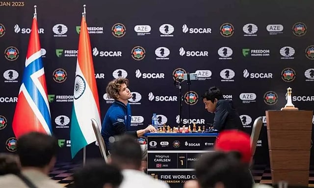 உலக கோப்பை செஸ் தொடர் அஜர்பைஜானில் உள்ள பாகு என்ற நகரில் நடைபெற்று வருகிறது. இதன் இறுதிப் போட்டியின் முதல் சுற்றில் வெள்ளை நிற காய்களுடன் விளையாடினார் பிரக்ஞானந்தா. சுமார் இரண்டு மணி நேரத்திற்கும் மேலாக நடைபெற்ற இந்த போட்டி டிராவில் முடிந்ததாக அறிவிக்கப்பட்டது.
