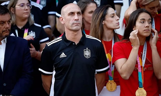 மைதானத்தில் வெற்றி கொண்டாட்டத்தின் போது ஸ்பெயின் வீராங்கனைகளை அந்நாட்டு கால்பந்து சம்மேளன தலைவர் லூயிஸ் ரூபியேல்ஸ் கட்டியணைத்து முத்தமிட்டு வாழ்த்து தெரிவித்தார். இந்த வீடியோ சமூக வலைதளதங்களில் வைரலானது. லூயிஸ் ரூபியேல்சின் இந்த செயலுக்கு கண்டனங்கள் குவிந்தன.