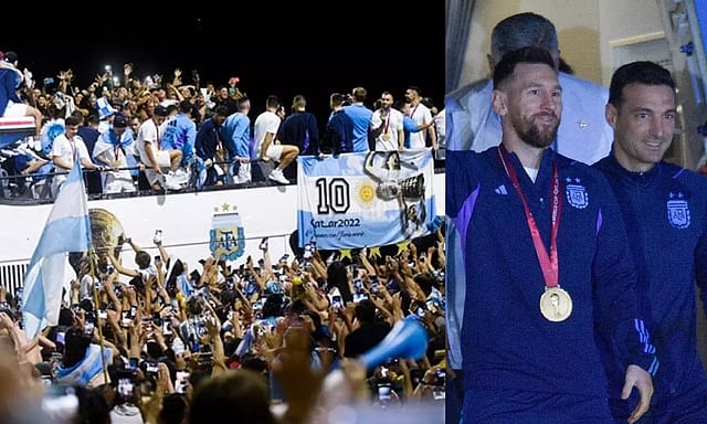 இந்த நிலையில் உலகக் கோப்பையை வென்ற அர்ஜென்டினா அணியினர் இன்று தாயகம் திரும்பினார்.அந்த வகையில் நாடு திரும்பிய அர்ஜெண்டினா அணிக்கு தலைநகர் பியூனஸ் அயர்சில் உற்சாக வரவேற்பு அளிக்கப்பட்டது. வழி நெடுகிலும் லட்சக்கணக்கான ரசிகர்கள், தங்கள் அணி வீரர்களுக்கு உற்சாக வரவேற்பு அளித்தனர். சாலைகளின் இரு புறங்களிலும் ரசிகர்கள் ஆடிப்பாடி தங்கள் மகிழ்ச்சியை வெளிப்படுத்தினர்.
