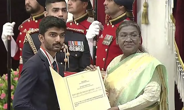 இந்த நிலையில், டெல்லியில் உள்ள ராஷ்டிரபதி பவனில் குடியரசுத் தலைவர் திரவுபதி முர்மு தேசிய விளையாட்டு விருதுகளை வழங்கினார். அப்போது குகேஷ் மற்றும் மனுபாகருக்கு கேல் ரத்னா விருது வழங்கப்பட்டது.