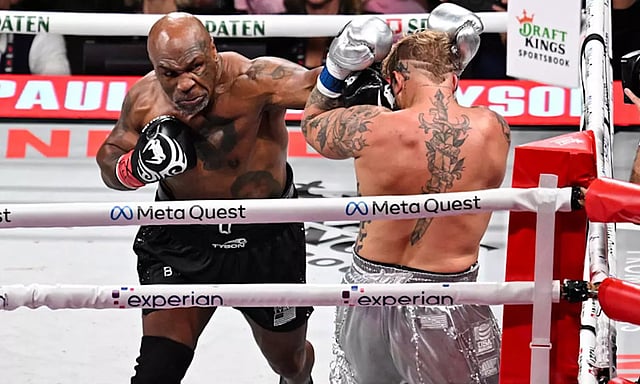 முன்னாள் உலக 'ஹெவிவெயிட்' சாம்பியனான மைக் டைசன் (58 வயது), இதுவரை விளையாடிய 58 குத்துச்சண்டை போட்டியில், 50-ல் வெற்றி கண்டுள்ளார். இதில் 44 போட்டியில் எதிரணி வீரரை 'நாக்-அவுட்' முறையில் வீழ்த்தினார். ஆறு போட்டியில் மட்டும் தோல்வியடைந்தார். எதிரணி வீரரின் காதை கடித்தது, பாலியல் பலாத்காரம், போதை பழக்கம் என பல சர்ச்சையில் சிக்கியதால் தொடர்ந்து போட்டியில் பங்கேற்கவில்லை. சுமார் 20 ஆண்டுகளுக்கு பின், மீண்டும் தொழில்முறை போட்டிக்கு திரும்பினார்.