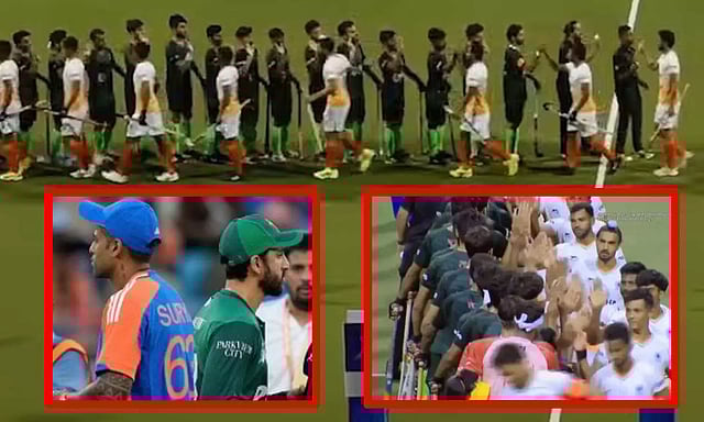 இந்நிலையில், ஹாக்கி போட்டியில் இந்தியா - பாகிஸ்தான் வீரர்கள் ஹைபை கொடுத்துக்கொண்டது அனைவரின் கவனத்தையும் ஈர்த்துள்ளது.