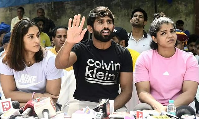 பாலியல் குற்றச்சாட்டில் சிக்கிய இந்திய மல்யுத்த சம்மேளன தலைவர் பிரிஜ்பூஷன் சரண் சிங்கை கைது செய்யக் கோரி பஜ்ரங் பூனியா, சாக்ஷி மாலிக், வினேஷ் போகத், சங்கீதா போகத் உள்ளிட்ட மல்யுத்த வீரர், விராங்கனைகள் டெல்லியில் மாதக்கணக்கில் போராட்டம் நடத்தினர். இதைத் தொடர்ந்து மல்யுத்த சம்மேளன நடவடிக்கைகளில் இருந்து பிரிஜ் பூஷன் ஒதுங்கினார். கோர்ட்டு உத்தரவுப்படி அவர் மீது வழக்கு பதியப்பட்டு விசாரணை நடக்கிறது.