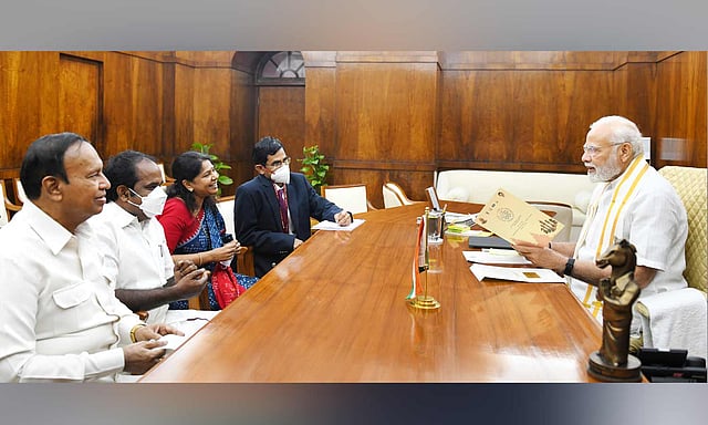 அதனைத் தொடர்ந்து, இன்று புதுடெல்லியில் பிரதமர் நரேந்திர மோடியை, தமிழ்நாடு முதலமைச்சர் மு.க. ஸ்டாலின் சார்பில், விளையாட்டு மேம்பாட்டுத் துறை அமைச்சர் சிவ.வீ. மெய்யநாதன், நாடாளுமன்ற உறுப்பினர்கள் டி.ஆர். பாலு மற்றும் கனிமொழி, தலைமைச் செயலாளர் முனைவர் வெ. இறையன்பு ஆகியோர் சந்தித்து, 28.7.2022 அன்று சென்னையில் நடைபெறவுள்ள 44வது செஸ் ஒலிம்பியாட் போட்டியின் தொடக்க விழாவிற்கான அழைப்பிதழையும், செஸ் ஒலிம்பியாட் போட்டிக்கான "தம்பி" சின்னத்தையும் வழங்கி, விழாவிற்கு வருகை தந்து சிறப்பிக்குமாறு அழைப்பு விடுத்தார்கள். இவ்வாறு அதில் தெரிவிக்கப்பட்டுள்ளது.