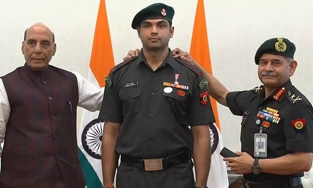 இந்த நிலையில், ஒலிம்பிக்கில் தங்கப் பதக்கம் வென்ற ஈட்டி எறிதல் வீரர் நீரஜ் சோப்ராவுக்கு இந்திய ராணுவத்தில் கவுரவ லெப்டினன்ட் கர்னல் பதவி வழங்கப்பட்டது. இந்த விழா பாதுகாப்பு அமைச்சர் ராஜ்நாத் சிங் மற்றும் ராணுவத் தளபதி ஜெனரல் உபேந்திர திவேதி முன்னிலையில் டெல்லியில் நடைபெற்றது.
