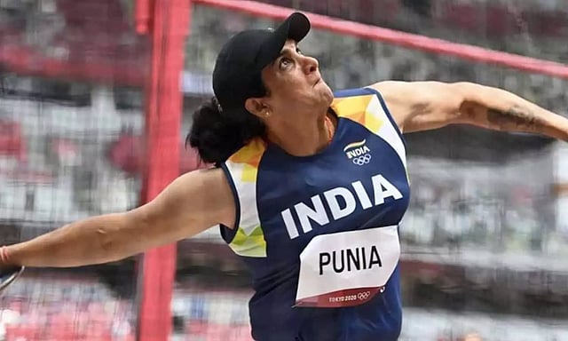 அரியானாவைச் சேர்ந்த 42 வயதான சீமா புனியா 2014-ம் ஆண்டு ஆசிய விளையாட்டில் சாம்பியன் ஆவார். காமன்வெல்த் போட்டியில் 4 பதக்கம் வென்று இருக்கிறார்.