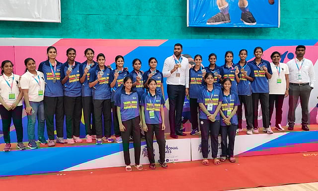 கூடைப்பந்து போட்டியின் பெண்கள் பிரிவின் இறுதி சுற்றில் தமிழகம் 62-67 என்ற புள்ளி கணக்கில் தெலுங்கானாவிடம் தோற்றது. இதன் மூலம் தமிழக அணி வெள்ளி பதக்கம் வென்றது.