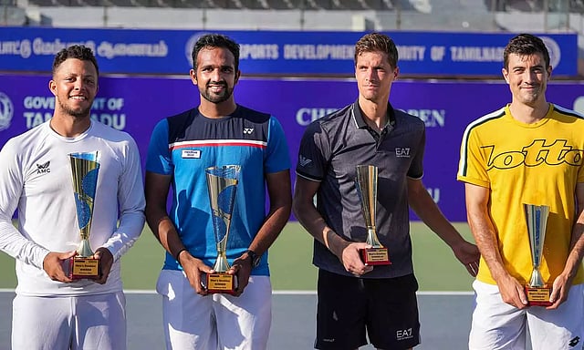 சென்னை ஓபன் ஏடிபி சேலஞ்சர் டென்னிஸ் தொடரில், ஆண்கள் இரட்டையர் இறுதிப் போட்டி இன்று நடைபெற்றது. இதில் இந்தியாவின் அர்ஜூன் காடே- பிரிட்டனின் ஜே கிளார்க் ஜோடி, செபஸ்தியான் (ஆஸ்திரியா)- நினோ செர்டாரசிக் (குரோசியா) ஜோடியை எதிர்கொணட்து. விறுவிறுப்பாக நடைபெற்ற இந்த ஆட்டத்தில் 6-0, 6-4 என்ற நேர்செட்களில் அர்ஜூன் காடே, கிளார்க் ஜோடி வெற்றி பெற்று, சாம்பியன் பட்டத்தை தட்டிச் சென்றது. ஏடிபி சேலஞ்சர் போட்டிகளில் அர்ஜூன் காடே இரட்டையர் பிரிவில் பெறும் 4வது சாம்பியன் பட்டம் இதுவாகும்.