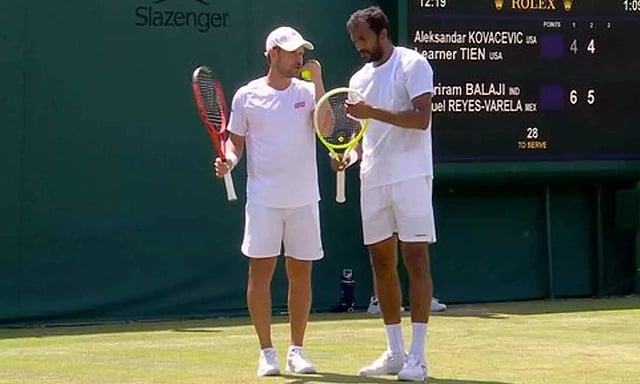 இந்த நிலையில் இன்று நடைபெற்ற ஆண்கள் இரட்டையர் பிரிவு முதல் சுற்று ஆட்டம் ஒன்றில் உலகின் 74-வது இடத்தில் உள்ள பாலாஜி அவரது மெக்சிகன் ஜோடியான மிகுவல் ரெய்ஸ்-வரேலா மற்றும் அமெரிக்க ஜோடியான லெர்னர் டியென்- அலெக்சாண்டர் கோவாசெவிக் ஆகியோர் மோதினர்.