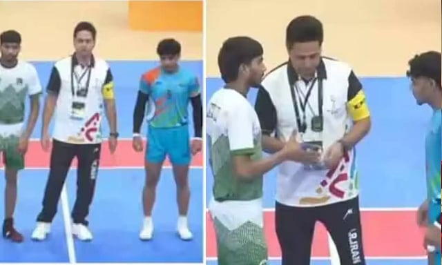 ?? NO HAND SHAKE ONCE AGAIN ??India Kabaddi Team REFUSES to shake hands with Pakistan Kabaddi Team before the toss at the Asian Youth Games 2025 ?Later, India SMASHED Pakistan 81–26 in a one-sided match ??- What's your take ? pic.twitter.com/AqP3xIBuiI