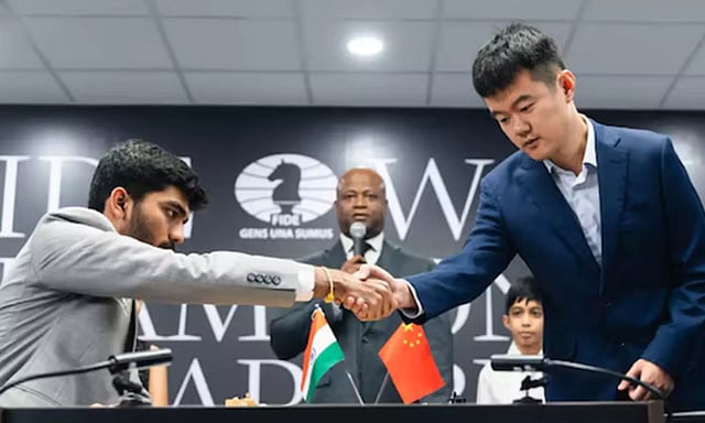 இந்தியாவின் குகேஷ், நடப்பு சாம்பியன் சீனாவின் டிங் லிரென் இடையிலான உலக செஸ் சாம்பியன்ஷிப் போட்டி சிங்கப்பூரில் நடந்து வருகிறது.