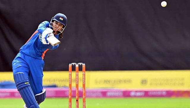 இதையடுத்து 100 ரன்கள் எடுத்தால் வெற்றி என்ற இலக்குடன் இந்திய அணி விளையாடியது. தொடக்க வீராங்கணையாக களமிறங்கிய ஷபாலி வர்மா 16 ரன்னில் ஆட்டமிழந்தார். மறுமுனையில் ஸ்மிர்தி மந்தனா அதிரடியாக விளையாடி 42 பந்துகளில் 8 பவுண்டரி, 3 சிக்சருடன் 63 ரன்கள் குவித்தார்.
