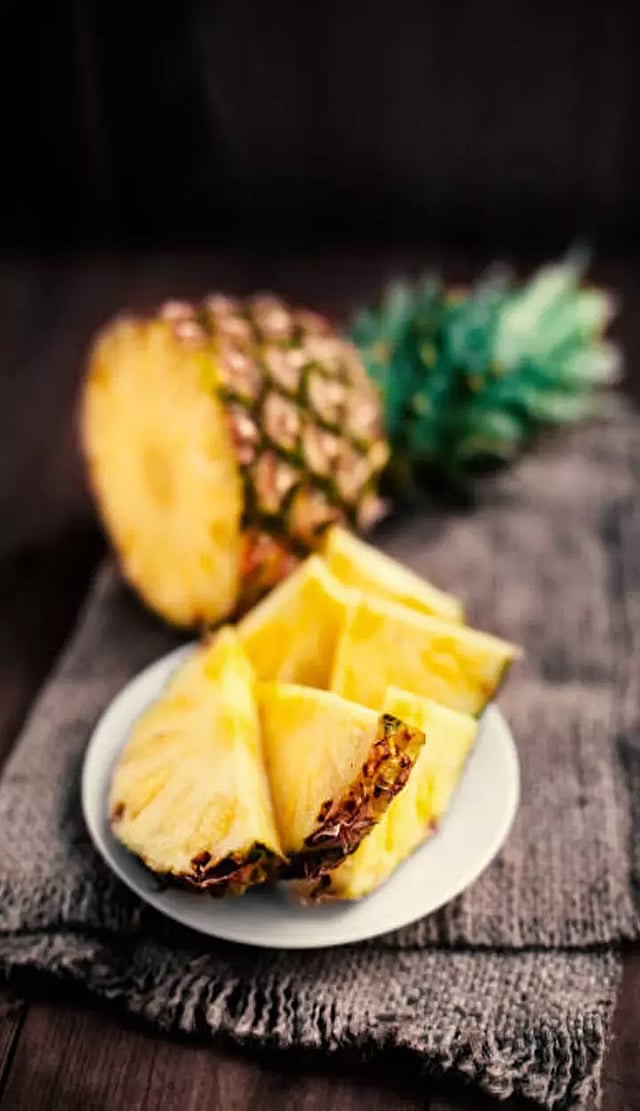 இதயக் கோளாறு, பலவீனம் குணமாகும், அன்னாசிப்பழம் அடிக்கடி சாப்பிட்டு வர, சிறுநீரகக் கற்கள் கரையும். அன்னாசிப்பழத் துண்டுகளை தேனில் கலந்து சாப்பிட்டு வர உடல்பலம் கூடும், உடல் பளபளப்பாகும்.