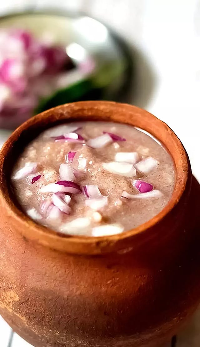 மோரில் சின்ன வெங்காயத்தை பொடி பொடியாக நறுக்கி போட்டு அத்துடன் கொத்தமல்லி, கறிவேப்பிலை ஆகியவற்றை சேர்த்து கம்பங்கூழுடன் கலந்து கூழ் பதத்தில் 200 முதல் 250 மில்லி லிட்டர் தினமும் ஒரு வேளை அருந்த உடலுக்கு நன்கு குளிர்ச்சியுண்டாகும்.