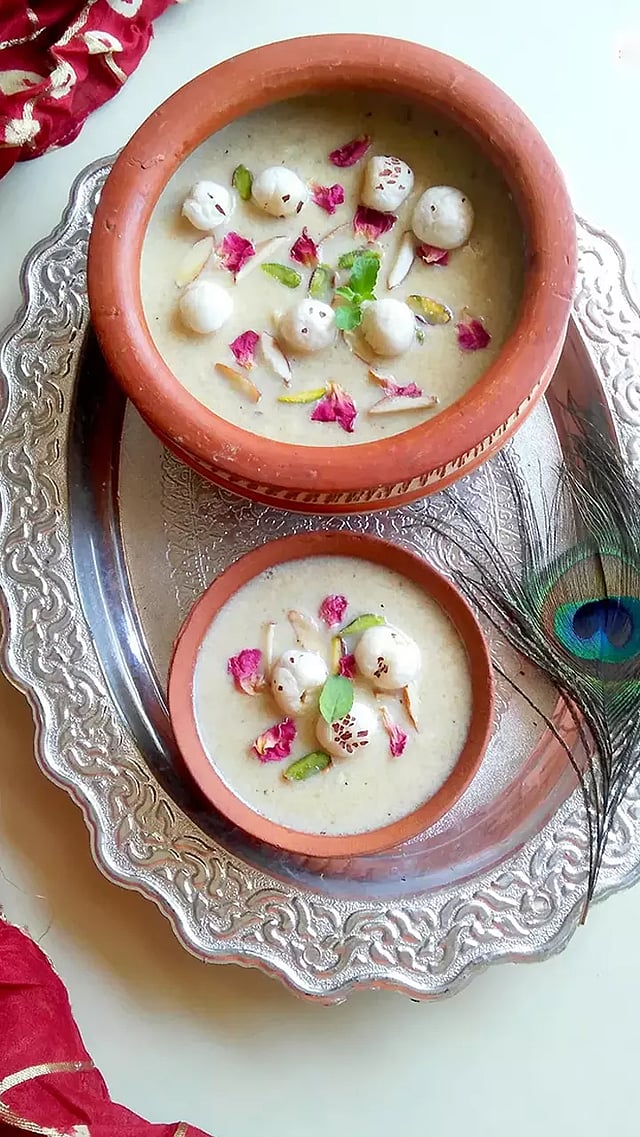 இன்று நாம், நவராத்திரிக்கு மிகவும் பிரபலமான மக்கானா கீர் எப்படி செய்வது என்று பார்க்கலாம்...மக்கானா (தாமரை விதைகள்) - 1 கப், பால் - 2½ கப், சர்க்கரை - 4 டீஸ்பூன், ஏலக்காய் தூள் - ½ டீஸ்பூன், முந்திரி, பாதாம், பிஸ்தா - தலா 1 டீஸ்பூன், குங்குமப்பூ - 10 கோடுகள், நெய் - 1 டீஸ்பூன்.ஒரு கடாயில் நெய் சேர்த்து, அதில் மக்கானாவை சேர்த்து மிருதுவாக வறுக்கவும்..மக்கானாவை அடுப்பிலிருந்து இறக்கி ஆறவிடவும்..ஒரு கடாயில் பாலை சூடாக்கி, அதில் வறுத்த மக்கானாவையும், சர்க்கரையையும் சேர்த்து நன்கு கரைய விடவும்..சர்க்கரை கரைந்ததும், ஏலக்காய் தூள், குங்குமப்பூ, நறுக்கிய உலர் பழங்கள் சேர்த்து, 10-15 நிமிடங்கள் கொதிக்க விடவும்..சுவையான மக்கானா கீர் தயார்! இதை சூடாகவோ அல்லது குளிர்ச்சியாகவோ பரிமாறலாம்..Explore