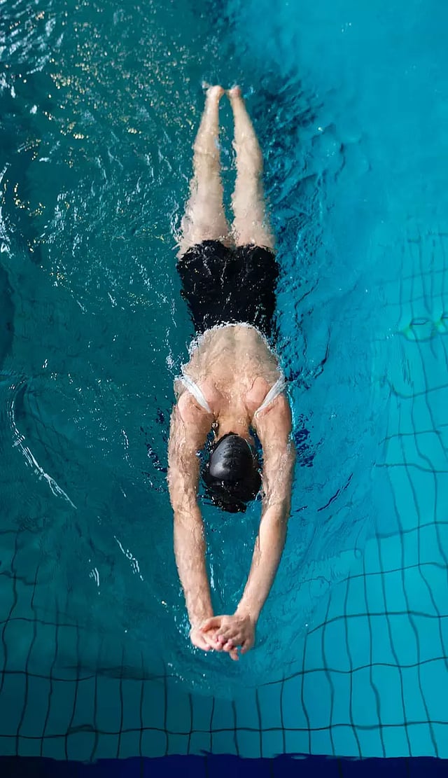 முதல் 10 நிமிடங்களுக்கு கைகால்களை நீட்டி நீச்சல் பயிற்சி மேற்கொள்ள வேண்டும். அடுத்த 10 நிமிடங்களுக்கு உடம்பை மேல்நோக்கி மல்லார்ந்த நிலையில் நீரில் படுத்துக் கொண்டு கைகால்களை அசைத்து நீந்த வேண்டும். பின்பு சிறிது சிறிதாக நீச்சல் பயிற்சியின் வேகத்தை அதிகரிக்க வேண்டும்.