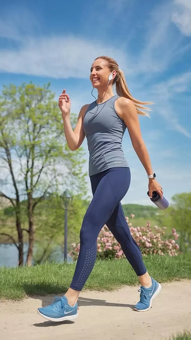 கைகளை முன்னும் பின்னும் ஒரே சீராக ஆட்டியவாறு, அதேவேளை நெஞ்சுப் பகுதியை விட உயர்த்திவிடாமல் நடந்து செல்லுங்கள்.