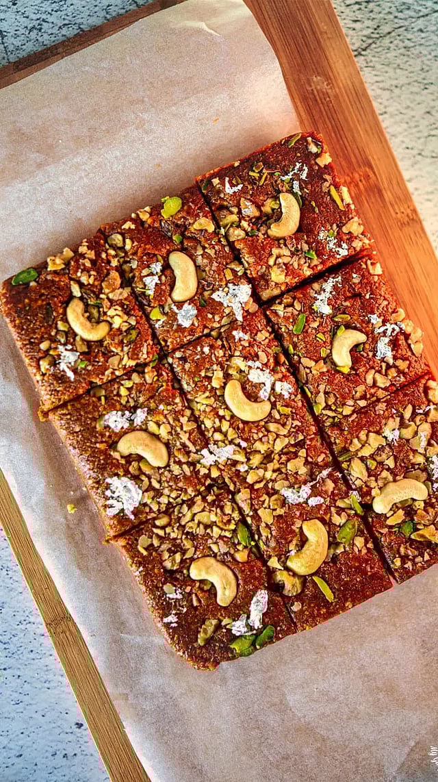 இப்போது ஆரோக்கியமான 'வால்நட் பர்பி தயார். அதன் மேலே நெய்யில் வறுத்த வெள்ளை எள் மெல்லியதாக நறுக்கிய பாதாம் போன்றவற்றை அலங்காரமாக தூவலாம்.