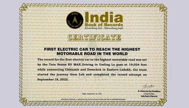 டாடா நெக்சான் EV மேக்ஸ் மாடல் இந்திய சாதனை புத்தகத்தில் இடம்பிடித்து அசத்தி இருக்கிறது. லடாக்கின் உம்லிங் எல்ஏ பாஸ் பகுதியை எட்டிய முதல் எலெக்ட்ரிக் கார் என்ற பெருமையை டாடா நெக்சான் EV மேக்ஸ் பெற்றுள்ளது. இதன் மூலம் நெக்சான் EV மேக்ஸ் மாடல் இந்திய சாதனை புத்தகத்தில் இடம்பிடித்து அசத்தி இருக்கிறது.