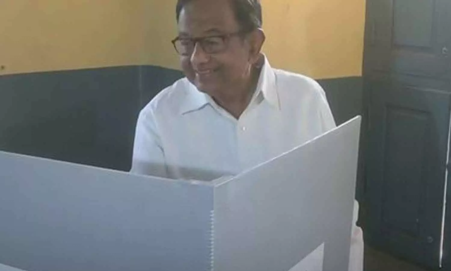 சிவகங்கை தொகுதியில் உள்ள கண்டனூர் வாக்குச்சாவடியில் முன்னால் அமைச்சர் ப. சிதம்பரம் வாக்களித்தார்.