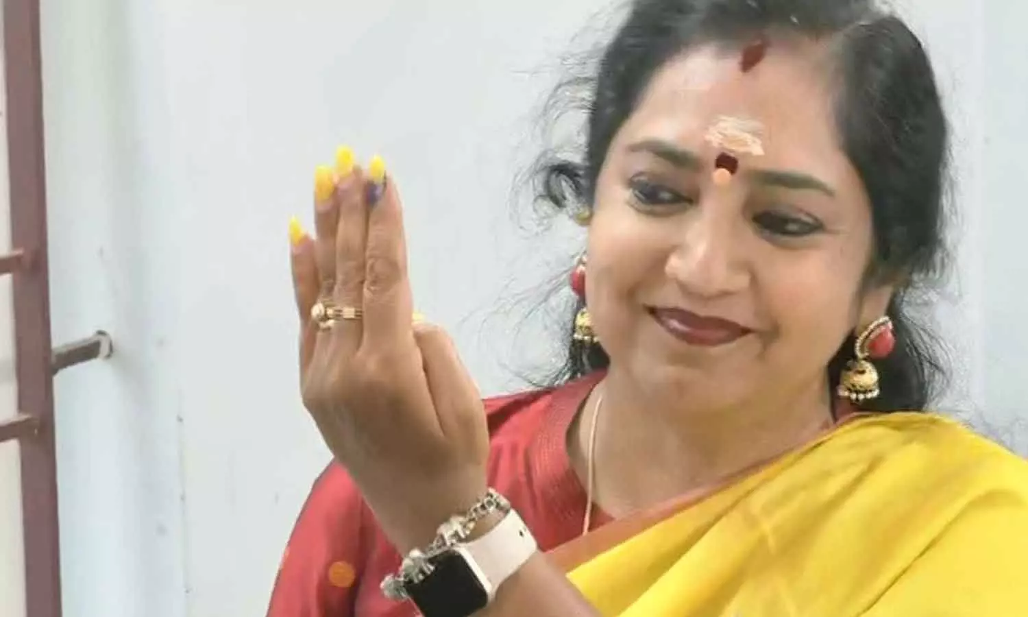 தென் சென்னை தொகுதி திமுக வேட்பாளர் தமிழச்சி தங்கபாண்டியன் வாக்களித்தார்.