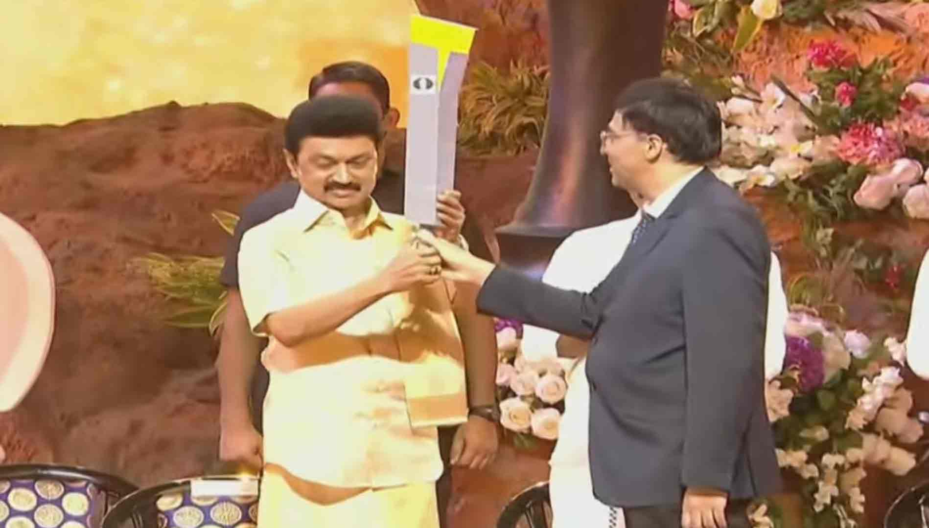 செஸ் ஒலிம்பியாட் ஜோதியை முதலமைச்சர் மு.க.ஸ்டாலினிடம் கிராண்ட் மாஸ்டர் விஸ்வநாதன் ஆனந்த் வழங்கினார். முதல்வர் ஸ்டாலின் பிரதமர் மோடியிடம் செஸ் ஒலிம்பியாட் ஜோதியை வழங்கினார். அதன்பின்னர் இளம் கிராண்ட் மாஸ்டர்கள் குகேஷ், பிரக்ஞானந்தா ஆகியோர் செஸ் ஒலிம்பியாட் ஜோதியை ஏற்றினர்.