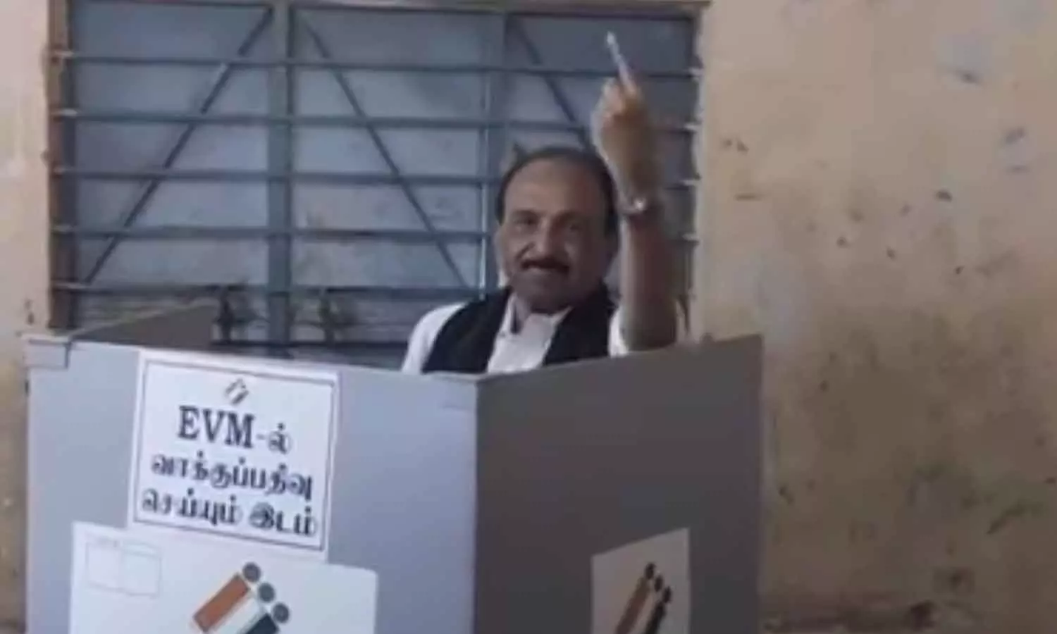 தென்காசியில் உள்ள வாக்குச்சாவடியில் மதிமுக பொதுச் செயலாளர் வைகோ ஜனநாயக கடமை ஆற்றினார்.