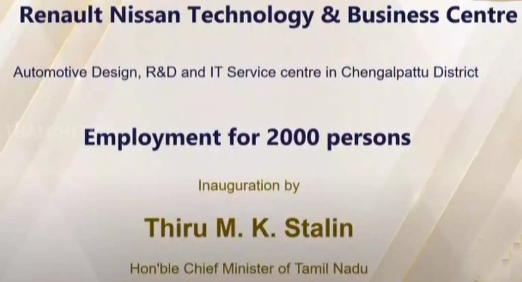 செங்கல்பட்டு மாவட்டத்தில் அமைந்துள்ள ரெனால்டு நிஷான் டெக்னாலாஜி அண்டு பிசினஸ் சென்டரை தொடங்கி வைத்தார்.