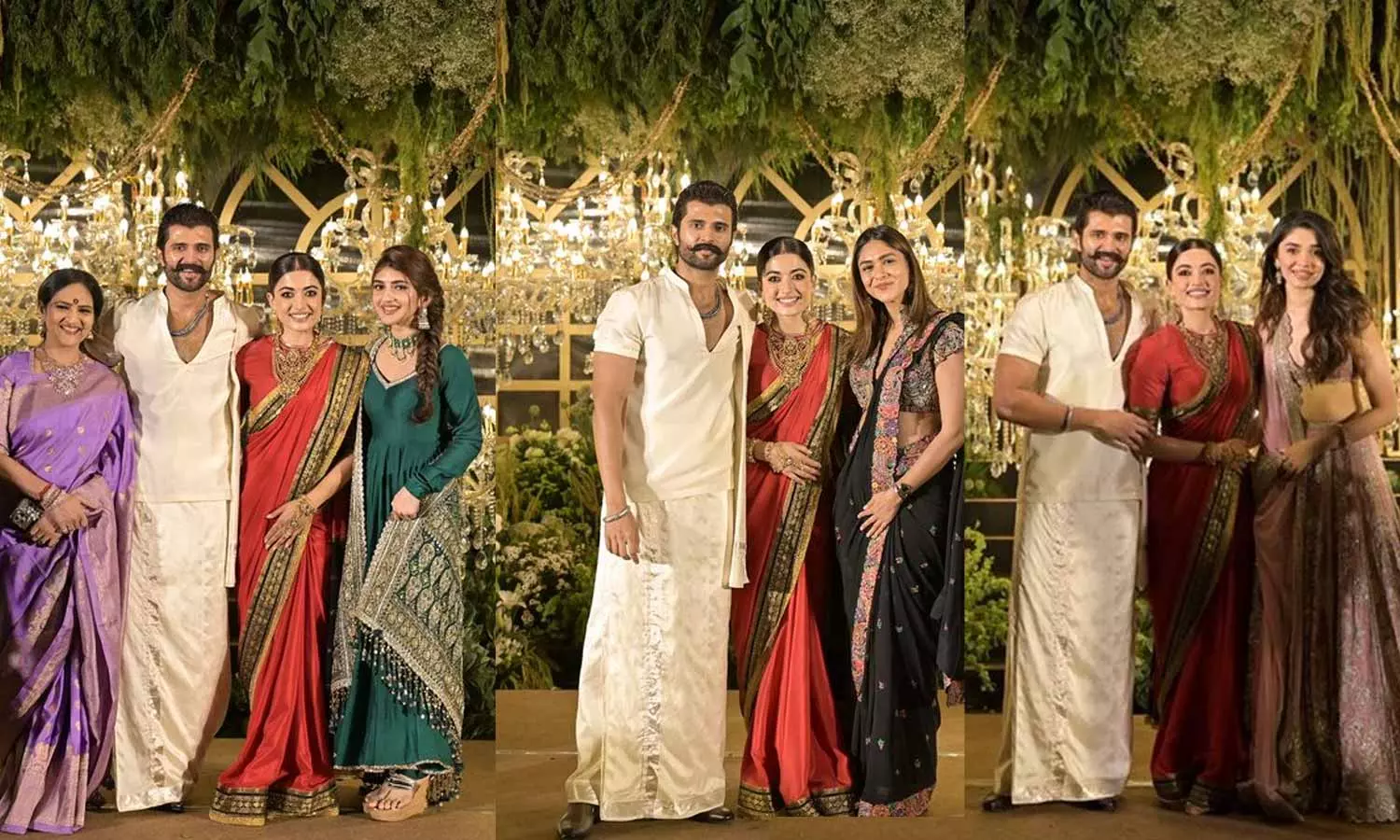 விழாவில் சரத்குமார், ராதிகா, கார்த்தி, சிரஞ்சீவி, நாகார்ஜூனா, அமலா, வெங்கடேஷ், நானி, ஸ்ரீகாந்த், அவரது மனைவி சிவரஞ்சனி, ராம்சரண், அல்லு அர்ஜூன், ராணா, நவீன் பாலி ஷெட்டி, ரவி தேஜா, நாகசைதன்யா, நடிகைகள் கிருத்தி ஷெட்டி, மிருணாள்தாக்கூர் உள்பட ஏராளமானோர் பங்கேற்று விஜய் தேவரகொண்டாவுக்கும், ராஷ்மிகாவுக்கும் வாழ்த்து தெரிவித்தனர்.