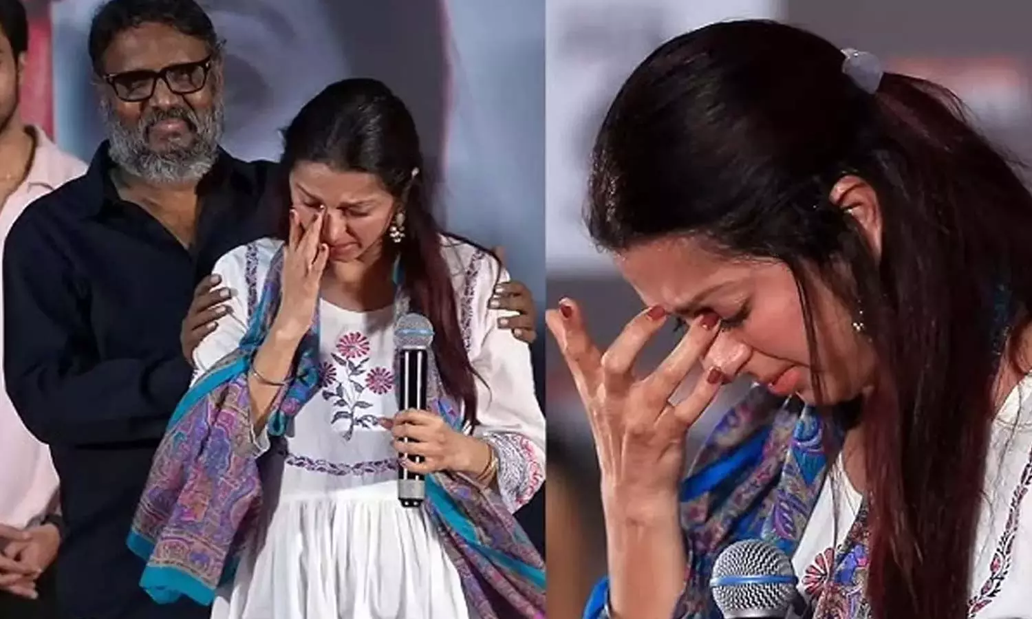 "இந்த படத்தில் நடிக்கத் தொடங்கியது முதல் என்னால் நிம்மதியாக தூங்கமுடியவில்லை. நள்ளிரவில் தூக்கம் வராமல் அவதிப்படுகிறேன்" என்று பேசிக்கொண்டே தேம்பி தேம்பி அழ தொடங்கிவிட்டார். இதையடுத்து நிகழ்ச்சி தொகுப்பாளர்கள் சமாதானப்படுத்த அமைதியானார். இது நிகழ்ச்சியில் பரபரப்பை ஏற்படுத்தியது.