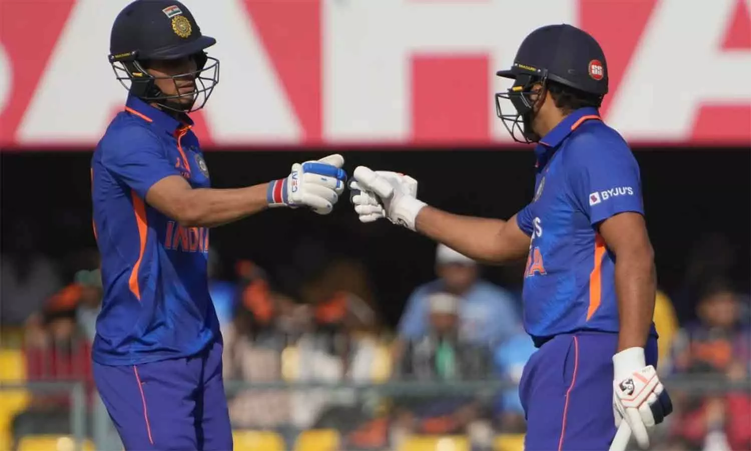 இந்திய அணியின் துவக்க வீரர்கள் ஷூப்மான் கில், கேப்டன் ரோகித் சர்மா ஜோடி அதிரடி ஆட்டத்தை வெளிப்படுத்தி அணிக்கு நல்ல அடித்தளம் அமைத்தனர். ரோகித் சர்மா 83 ரன்களும், ஷூப்மான் கில் 70 ரன்களும் சேர்த்தனர்.