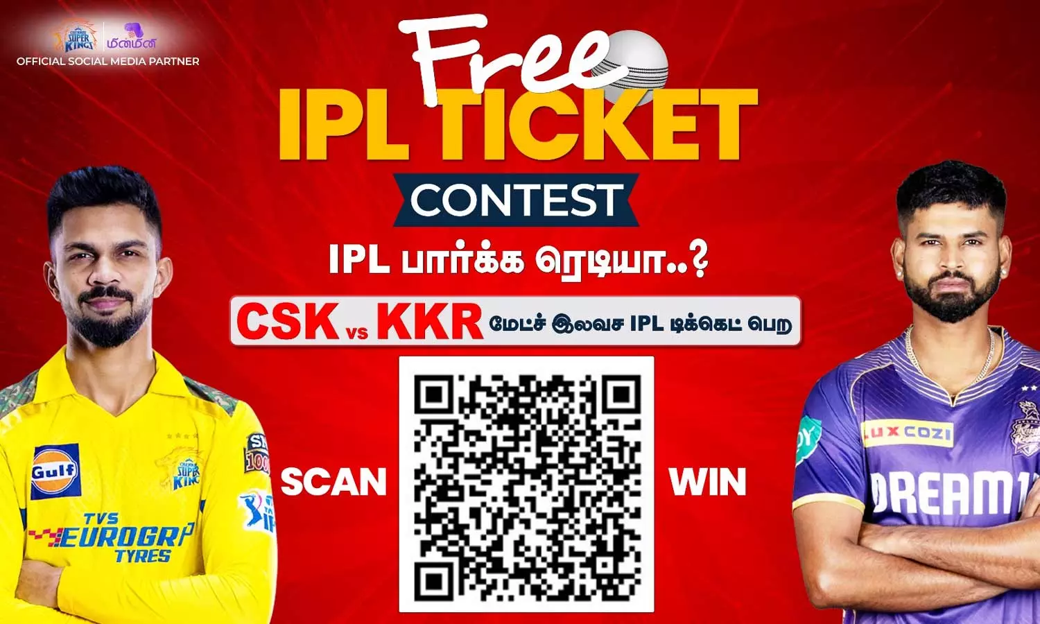 ரசிகர்கள் இந்த போட்டியில் (Contest) பங்கேற்று டிக்கெட்டை வென்று சிஎஸ்கே-கேகேஆர் போட்டியை இலவசமாக பார்த்து ரசிக்கலாம்.
