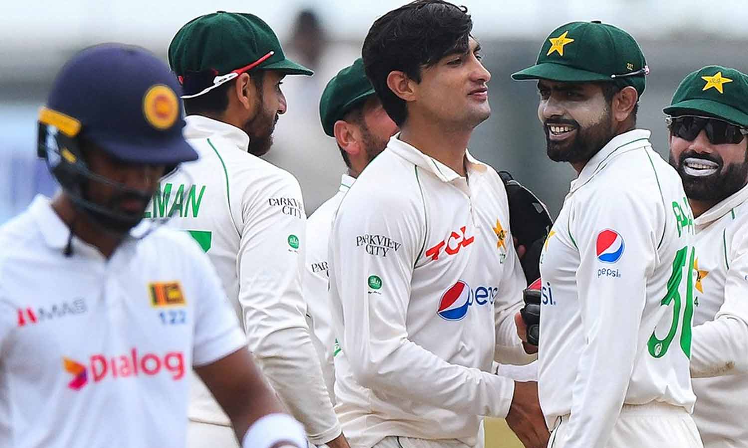போதுமான வெளிச்சம் இல்லாததால் ஆட்டம் பாதியில் நிறுத்தப்பட்டது. 3-வது நாள் ஆட்ட நேர முடிவில் இலங்கை அணி 5 விக்கெட்டுகளை இழந்து 176 ரன்கள் எடுத்தது. பாகிஸ்தான் தரப்பில் நசீம் ஷா 2 விக்கெட்டுகளை கைப்பற்றினார்.