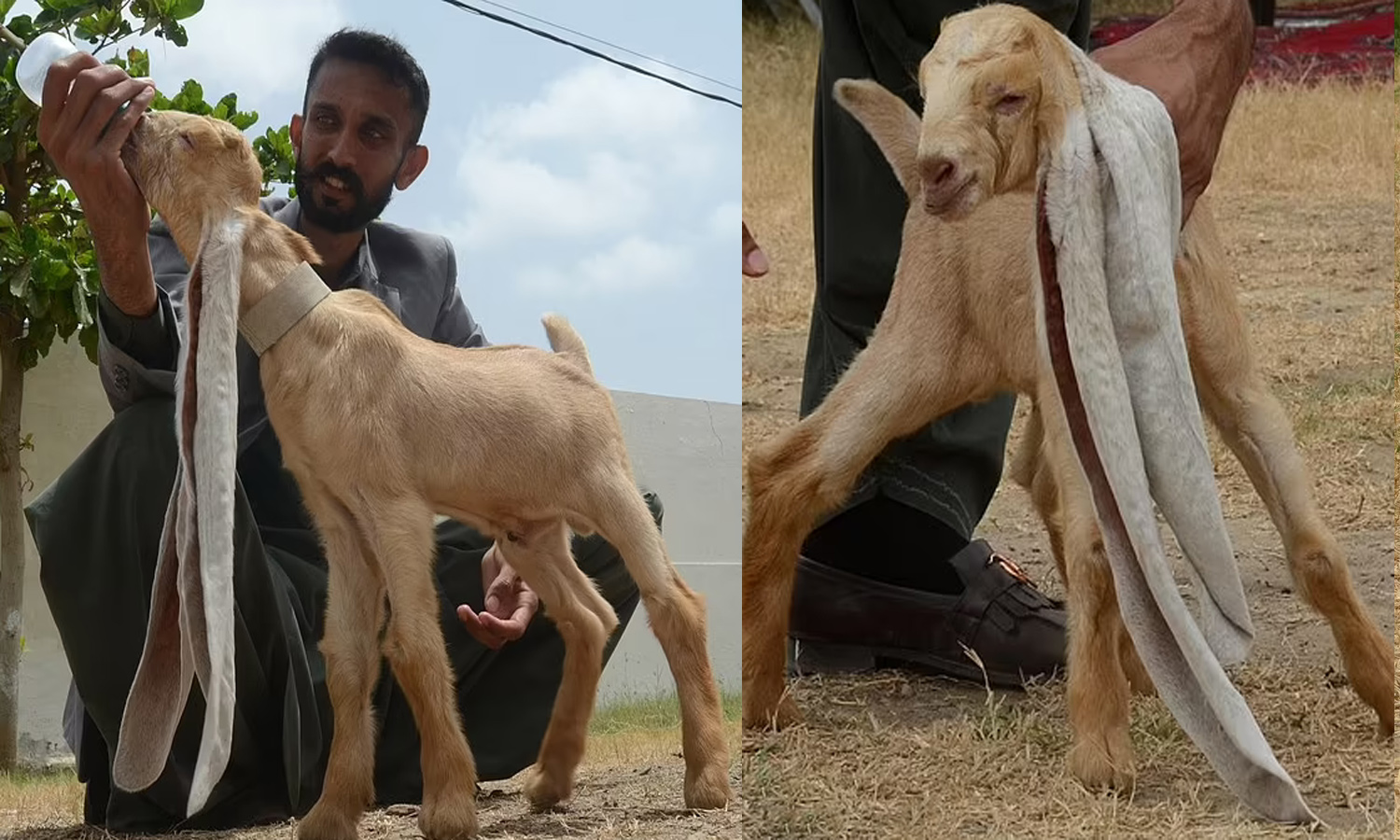 பாகிஸ்தான் நாட்டின் கராட்சி மாகாணத்தை சேர்ந்தவர் முகமது ஹசன் நரிஜோ. இவர் தனது வீட்டில் ஆடுகளை வளர்த்து வருகிறார். இந்நிலையில், அவரது ஆட்டுப்பண்ணையில் கடந்த 2 வாரங்களுக்கு முன் ஆடு ஒன்று குட்டியை ஈன்றது. அந்த ஆட்டுக்குட்டியின் காது மற்ற ஆட்டுக்குட்டிகளின் காதை விட மிகவும் நீளமாக இருந்ததை கண்டு உரிமையாளர் மிகவும் ஆச்சரியமடைந்தார்.