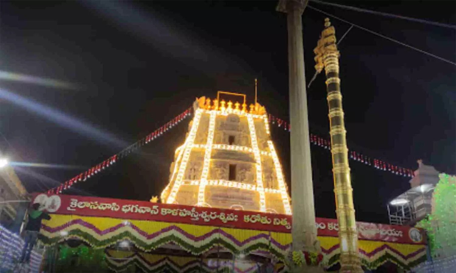 திருப்பதி மாவட்டம் ஸ்ரீகாளஹஸ்தி சிவன் கோவில் பஞ்சபூத தலங்களில் வாயு தலமாக விளங்குகிறது. இந்த கோவிலில் மகாசிவராத்திரி பிரம்மோற்சவத்தின் முதல் நாளான நேற்று முன்தினம் கண்ணப்பர் கொடியேற்றம் நடைபெற்றது. அதனைத் தொடர்ந்து நேற்று காளஹஸ்தீஸ்வரருக்கு கொடியேற்றம் நடைபெற்றது. நுழைவுவாயில் அருகில் சுமார் 40 அடி உயரத்தில் கல்லால் ஆன கொடி மரமும், அதன் அருகில் குரு தட்சிணாமூர்த்திக்கு தங்கக்கொடி மரமும் உள்ளது. தங்கத் தகடு பொருத்தியுள்ள மற்றொரு காளஹஸ்தீஸ்வரர் கொடிமரமும் உள்ளது.
