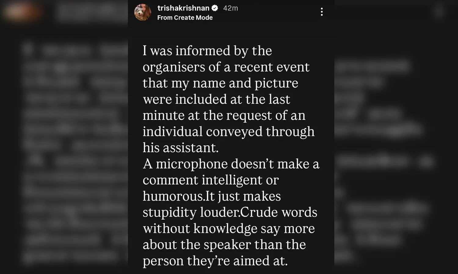 இதுகுறித்து த்ரிஷா தனது இன்ஸ்டா பக்கத்தில் கூறியிருப்தாவது:-