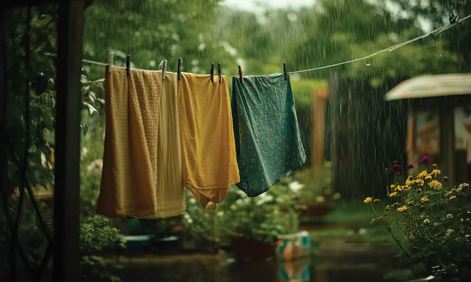 மழைக்காலத்தில், வெயில் மற்றும் காற்றின் ஈரப்பதம் இல்லாத காரணத்தால் துணிகளை உலர்த்துவது பெரும் சவாலாக உள்ளது. இதனால் துணிகள் சீக்கிரம் காயாமல் பூஞ்சை வாடை வீச ஆரம்பிக்கிறது. இதற்குத் தீர்வாக, முதலில் துணிகளில் உள்ள அதிகபட்ச நீரை வெளியேற்ற வேண்டும்; வாஷிங் மெஷினில் துவைப்பவர்கள் துணிகளை அதிக வேகத்தில் இரண்டு முறை 'சுழற்றுதல் (Spin Cycle)' செய்ய வேண்டும், கைகளால் துவைப்பவர்கள் துணிகளை ஒரு சுத்தமான, உலர்ந்த டவலில் வைத்து இறுக்கமாகச் சுருட்டி அழுத்தி நீரை உறிஞ்சச் செய்யலாம். மேலும், துணிகளை உலர்த்தப் போடும் முன் ஒவ்வொன்றையும் நன்கு உதறி, அதன் இழைகளைப் பிரித்து, துணியின் மேற்பரப்பை அதிகப்படுத்துவதன் மூலம் ஆவியாதல் சீக்கிரமாக நடைபெறும்; குறிப்பாக ஜீன்ஸ் போன்ற கனமான துணிகளை மடிப்பு இல்லாமல் பரப்பிப் போடுவது மிகவும் அவசியமாகும்.